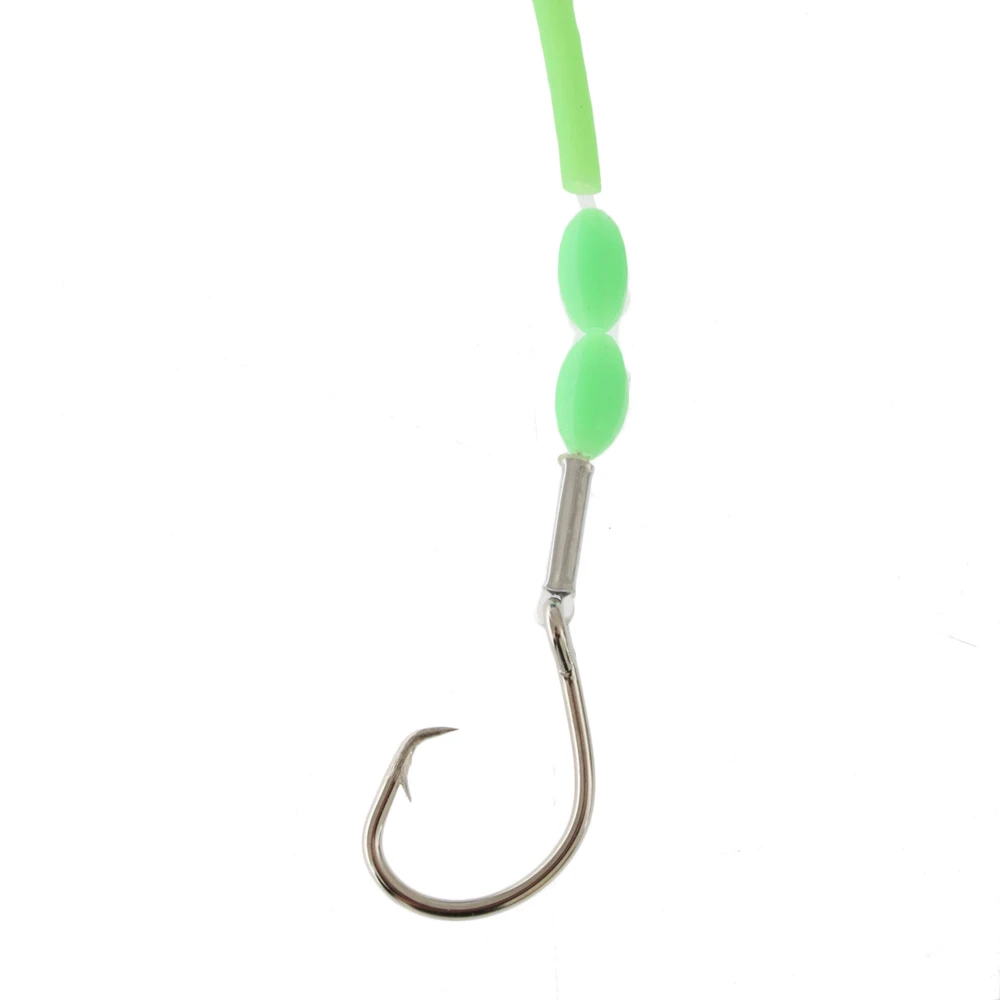 rigged with lumo tubes and beads for visibility in deep water. This