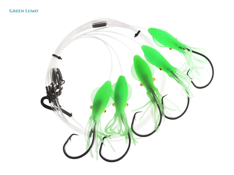 Ideal for deep water fishing, the H2o Pro 5-Hook Lumo Squid