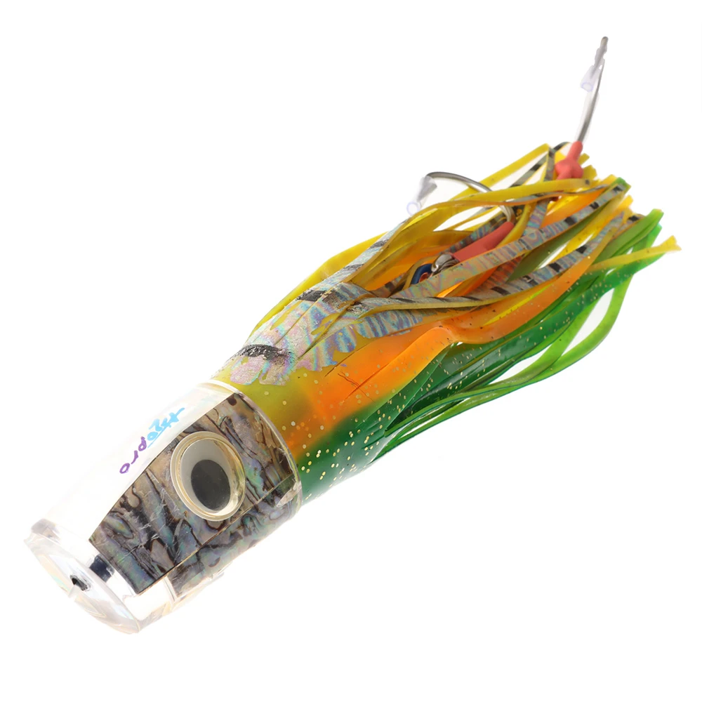 This deadly lure design features an abalone shell insert with a double PVC skirt to attract the fiercest predators. The H2o Pro Katana Heavy Rigged Game Lure will have you battling with the giants on the water.